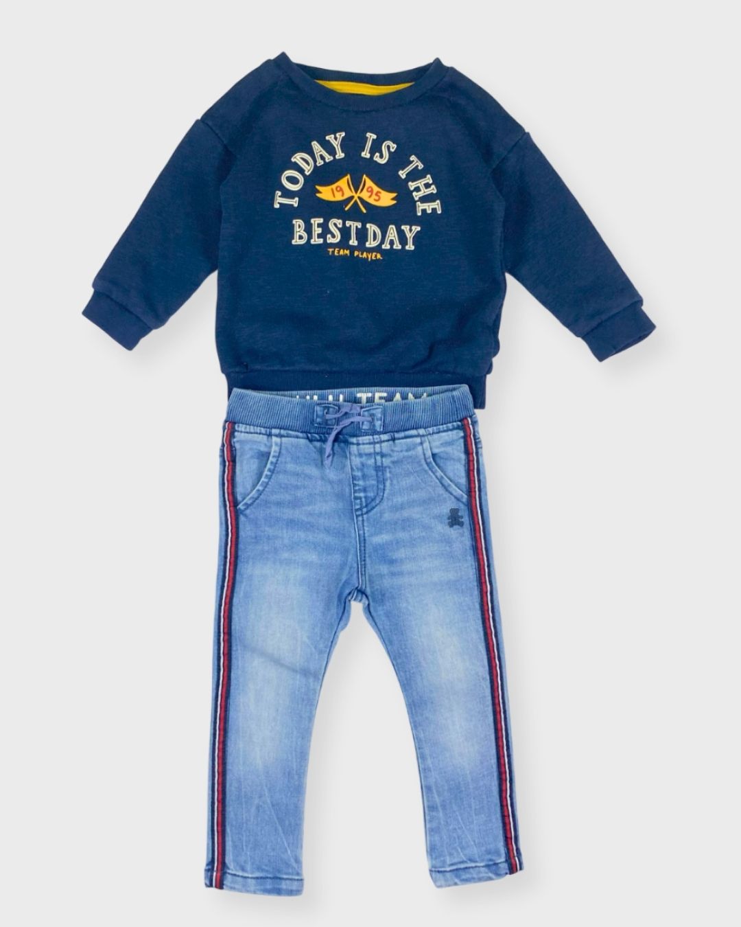 Jean Lulu Castagnette et pull imprimé Primark. Casual et moderne. 💙🌟