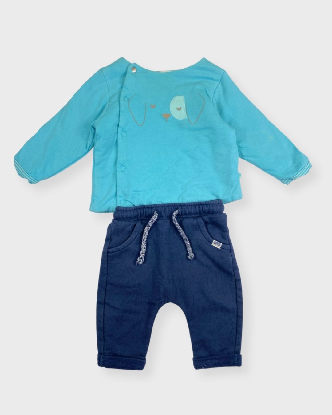 Jogging bleu Tape à l’œil et pull chaud Obaïbi. Cocooning et parfait pour l’hiver. ❄️🧶