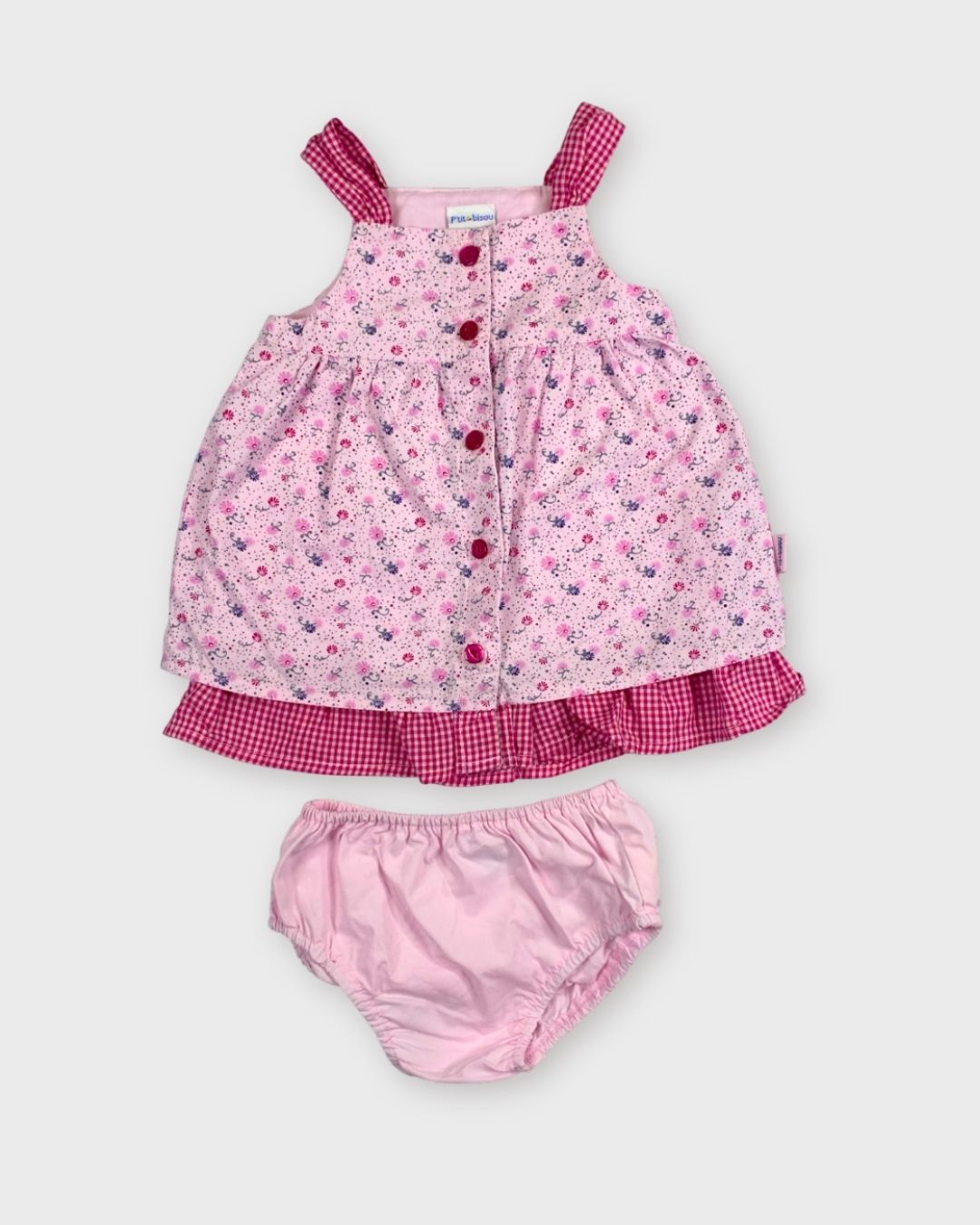 Une adorable robe fleurie rose avec sa culotte assortie, signée P’tit Bisou. Le look parfait pour l’été tout en douceur. 🌺