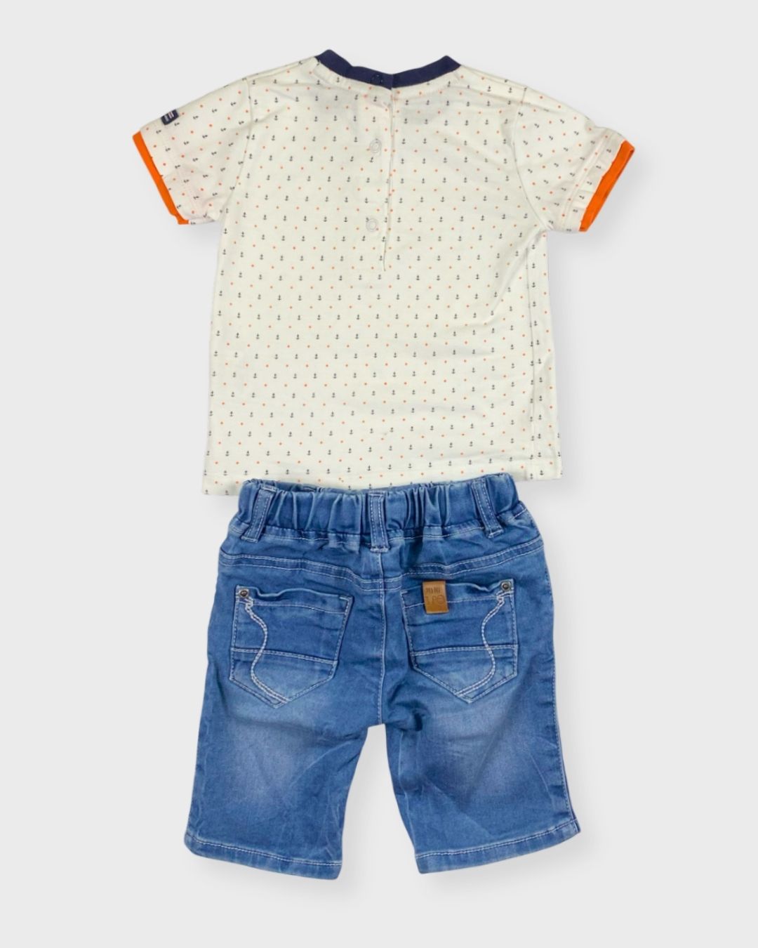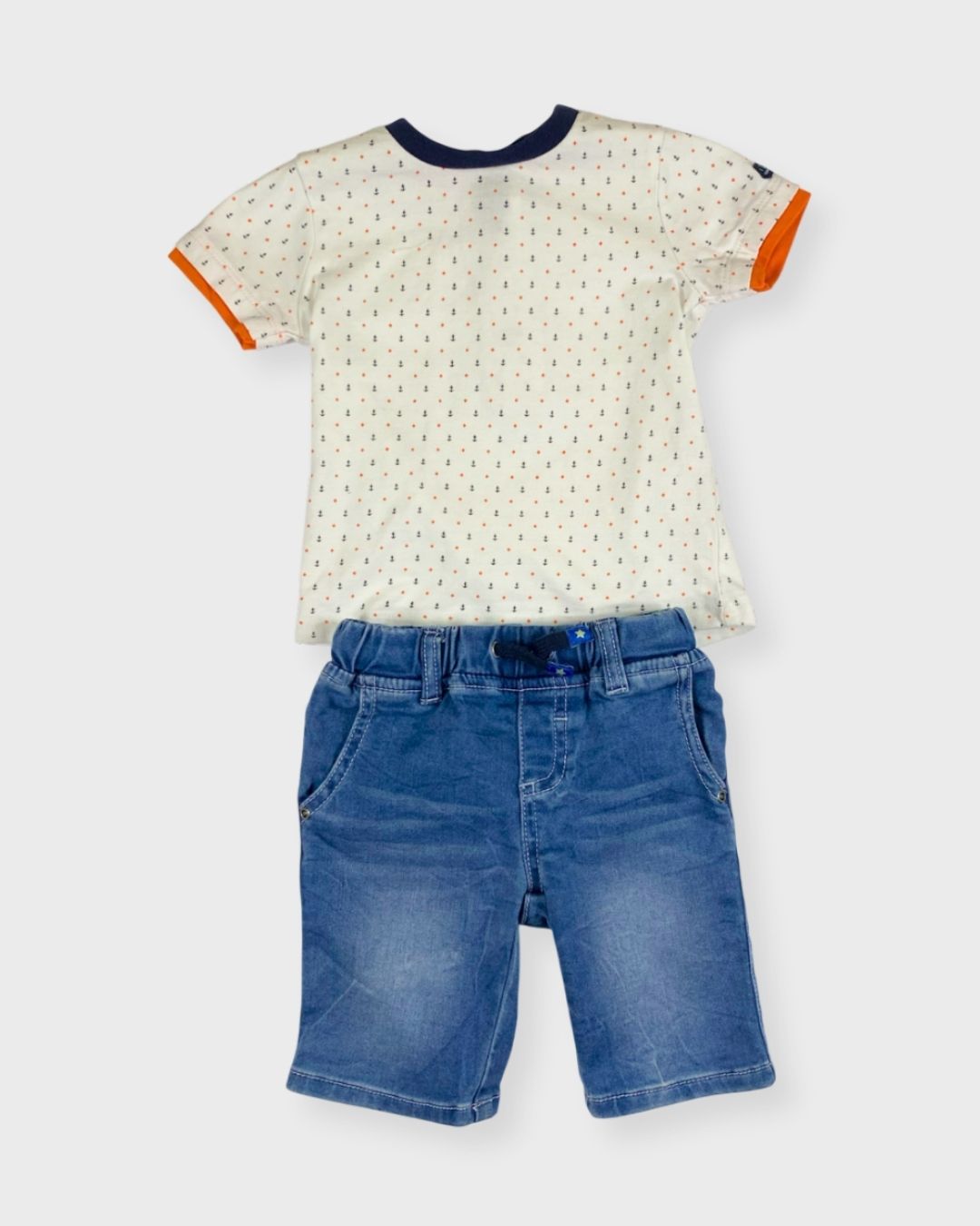 Short en jean 3 Pomme et t-shirt à motif ancre Terre de Marin. Marin et adorable ! ⚓🌞