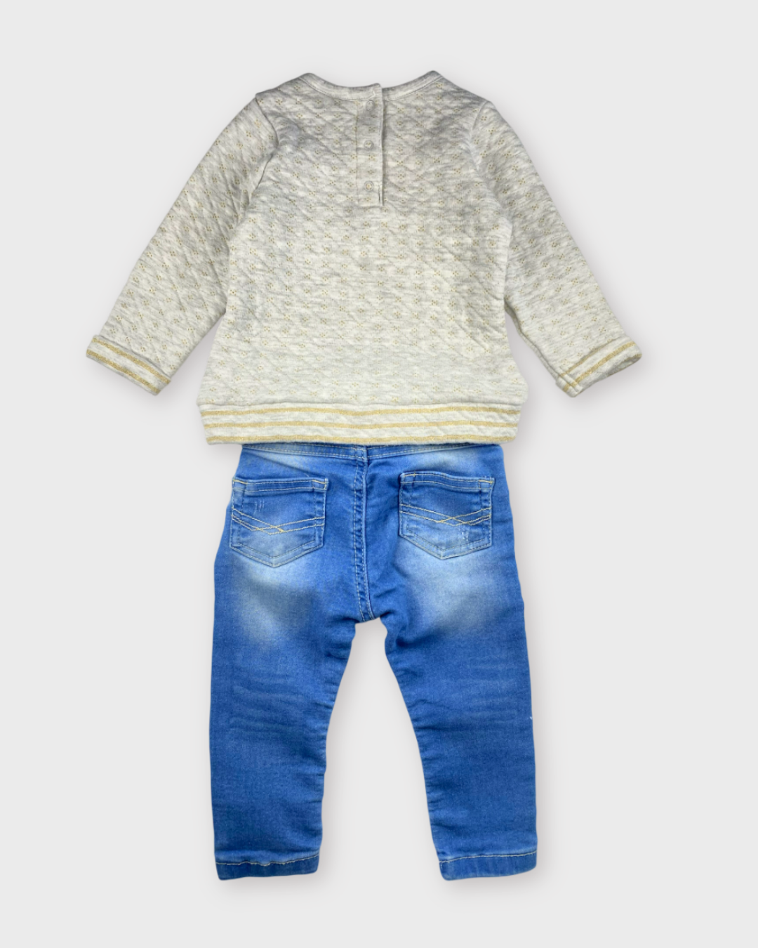 Ensemble casual idéal pour la vie de tous les jours avec petit jean La Boîte à Malice et pull fin Tape à l’Œil, parfait pour explorer le monde.