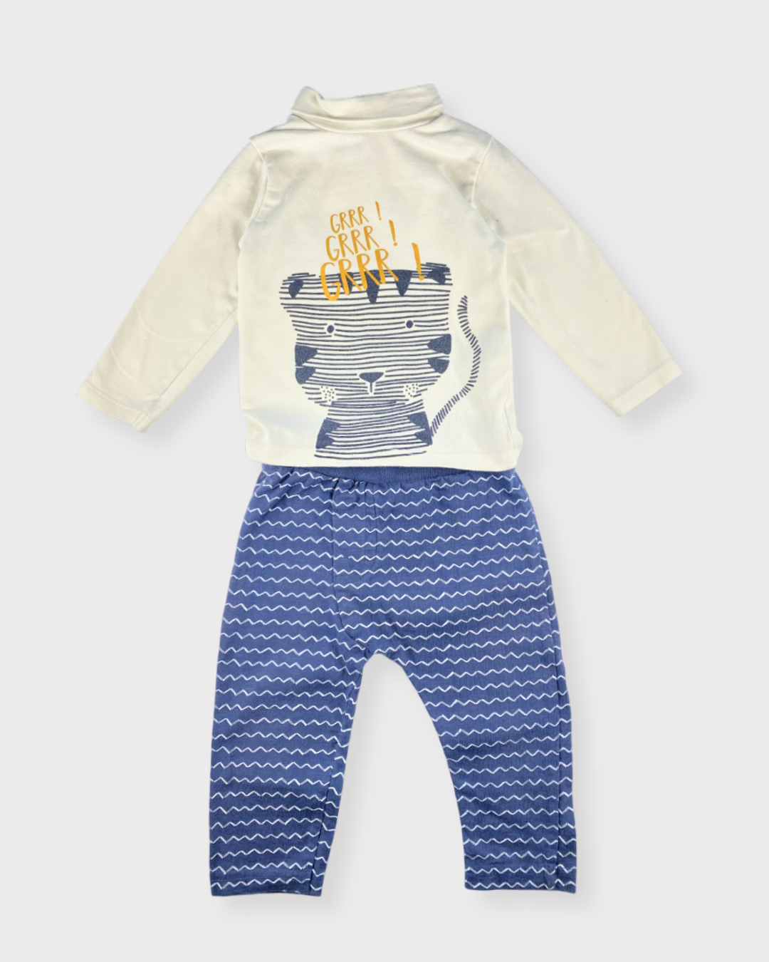 Look completement grrrr, avec son legging à rayures rappelant la savane et son tshirt à col haut.