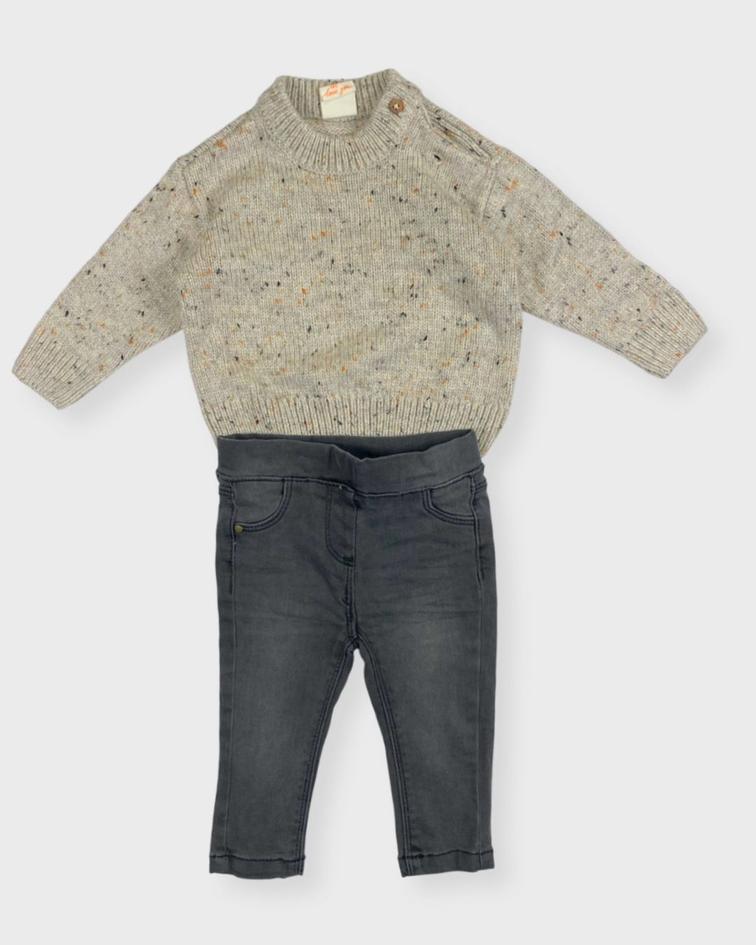 Jean gris Tape à l’œil et pull en maille Hema. Moderne et chaud, idéal pour les températures fraiches 🧶❄️