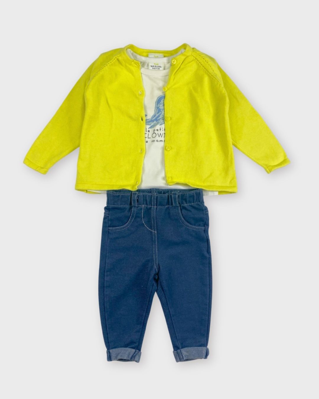 Un legging Kiabi, un t-shirt Tape à l’œil et un gilet jaune Tape à l’œil. Moderne et adorable. 💛