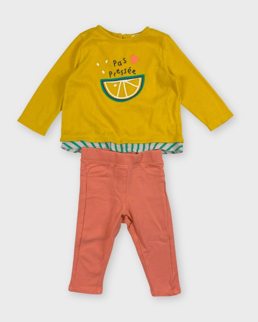 Un look coloré et pratique avec son legging Gemo et son t-shirt manches longues assorti (12 mois). Une tenue du quotidien confortable et joyeuse.