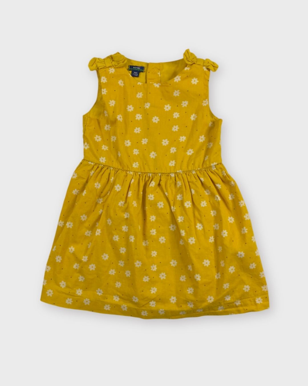 Une robe jaune à fleurs blanches Kiabi. Lumineuse et parfaite pour les journées ensoleillées.