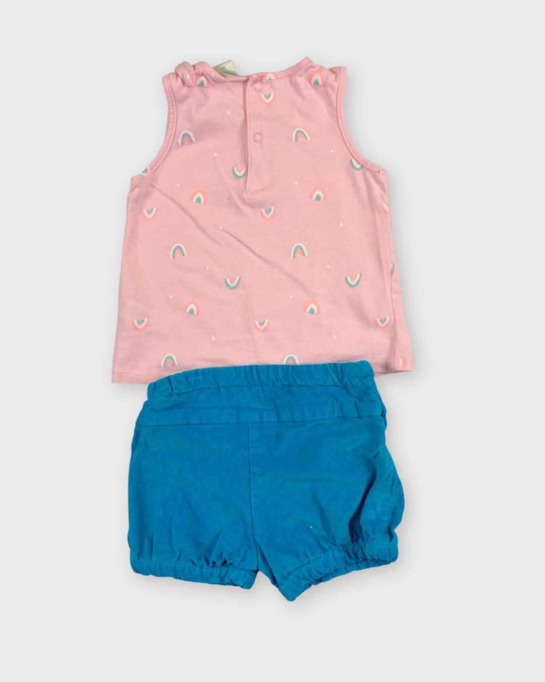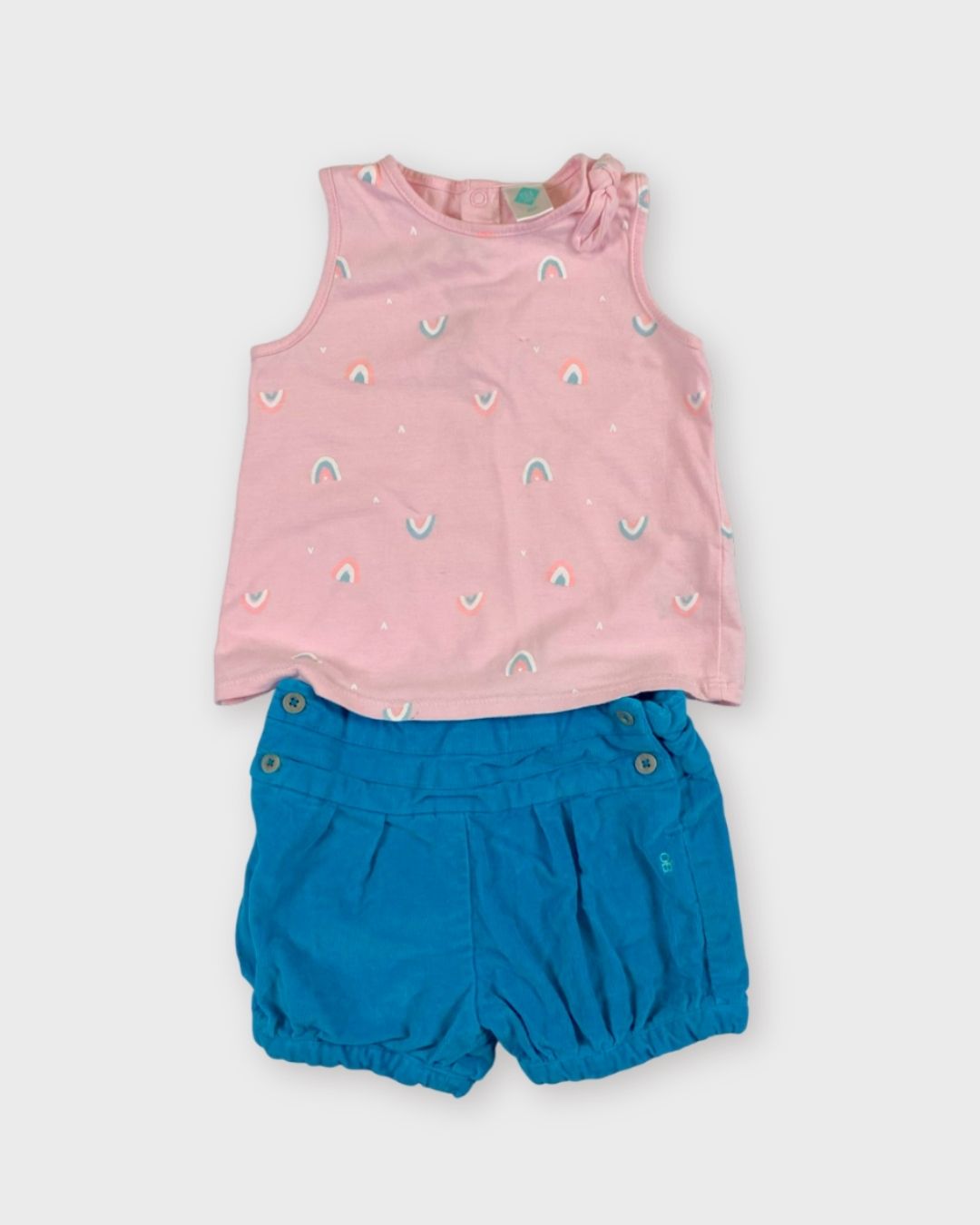Look estival bleu et rose : short Obaïbi et t-shirt Tex. Frais et tendance pour l’été.
