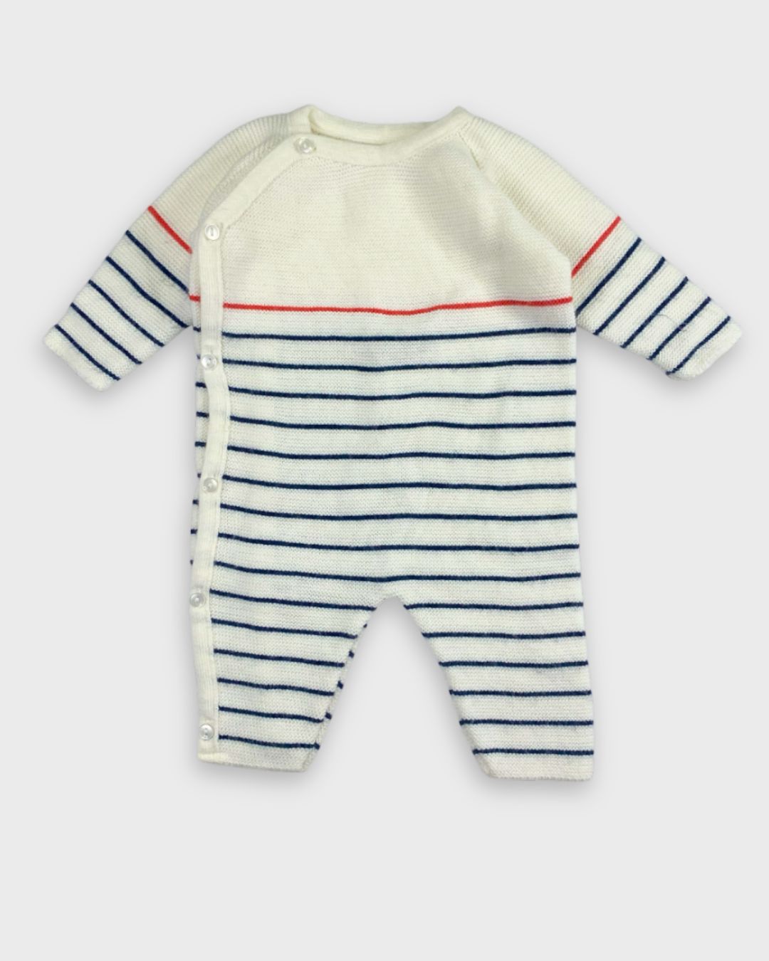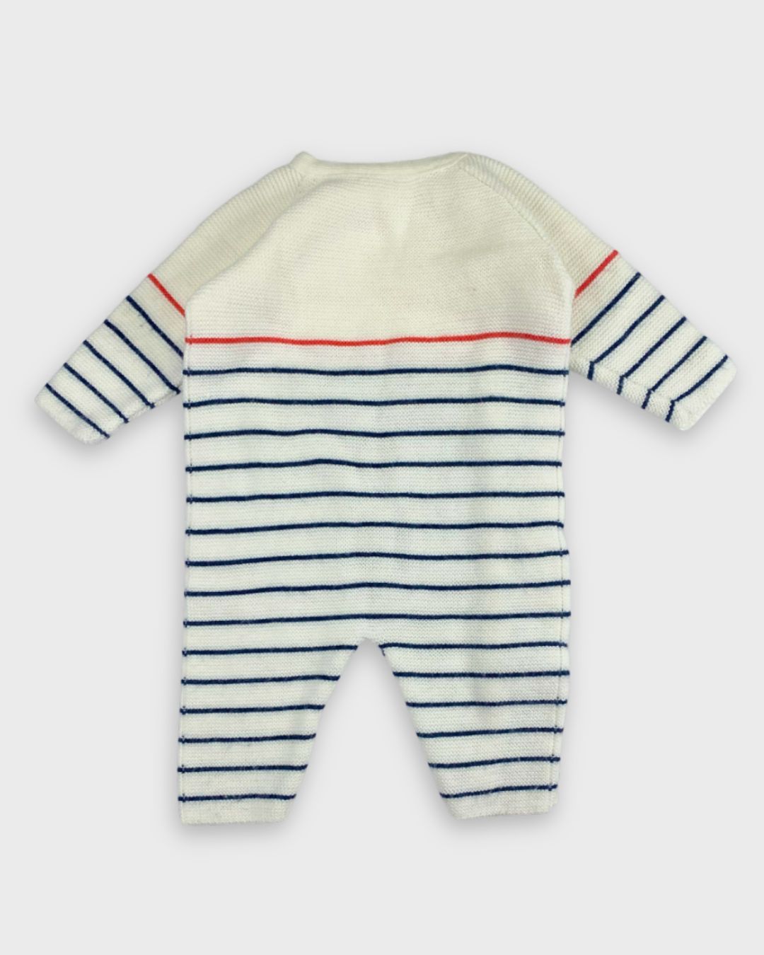 On adore cette combinaison en maille fait main, taille 6 mois. Chaleureuse et unique, parfaite pour l'hiver. ❄️