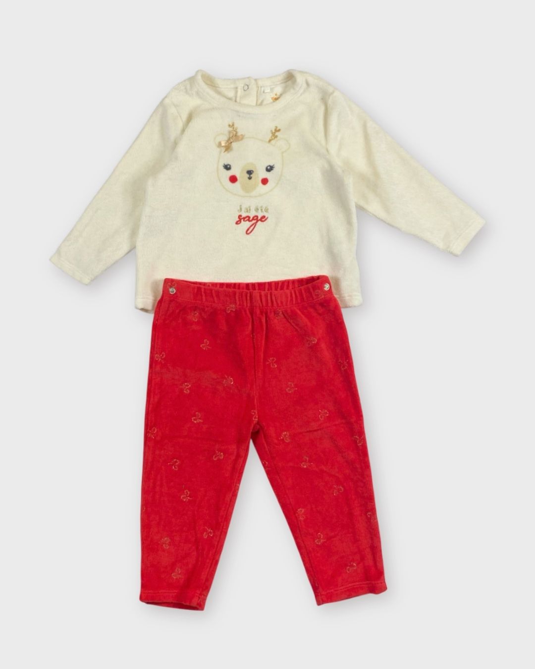 Un ensemble velours Orchestra composé d’un pantalon et d’un pull assorti. Idéal pour un look festif et chaleureux.