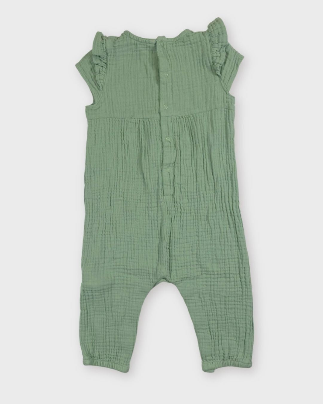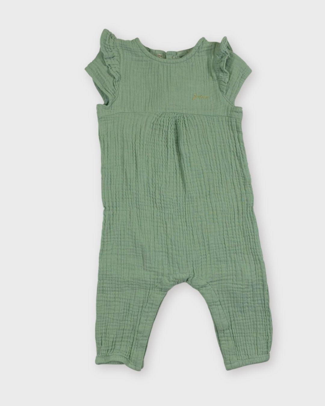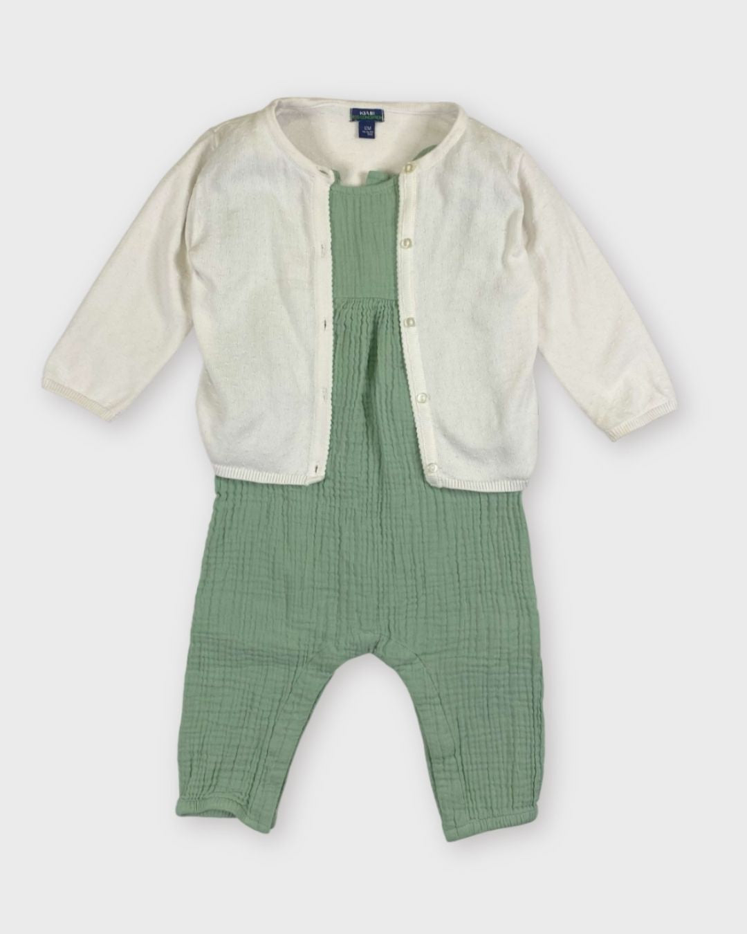 Une combinaison en double gaze Verbaudet accompagnée d’un gilet blanc Kiabi. Chic et confort, parfaite pour un style doux et raffiné.