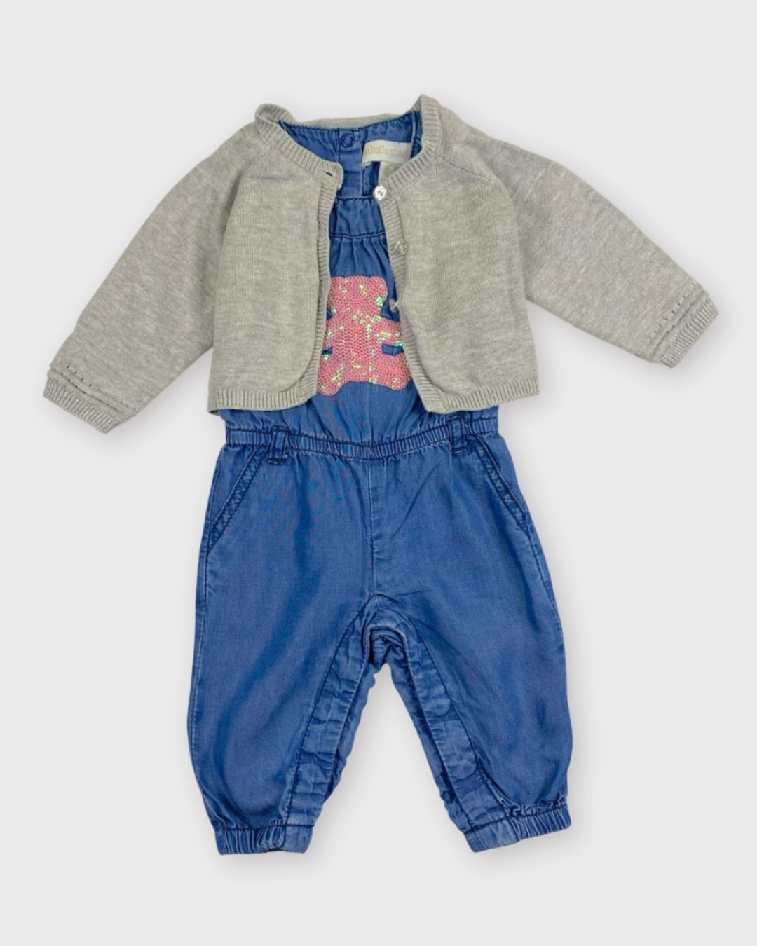Une combinaison imitation jean Lulu Castagnette avec un petit gilet Verbaudet. Parfait pour bouger avec style et briller en toute occasion. ✨