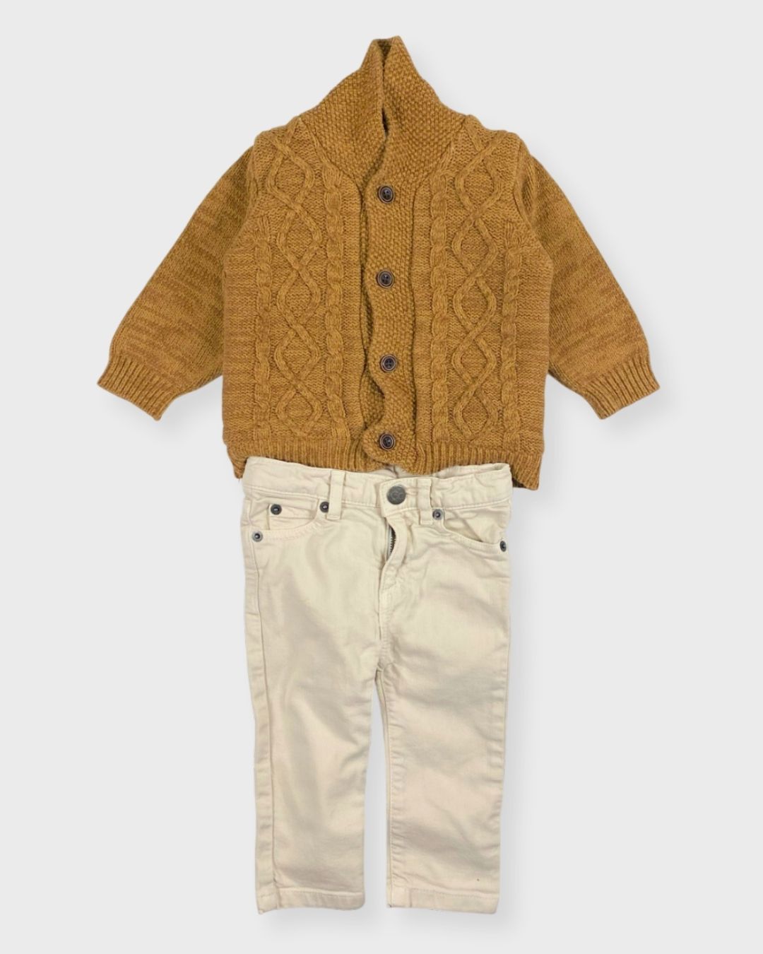 Pantalon beige C de C et pull chaud Tape à l’œil. Un look automnal trop mignon. 🍂❄️