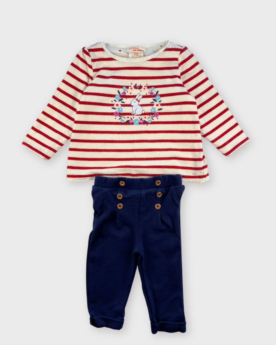 Un petit vent de fraîcheur souffle avec cet ensemble composé de sa marinière Sergent Major et de son legging bleu marine.