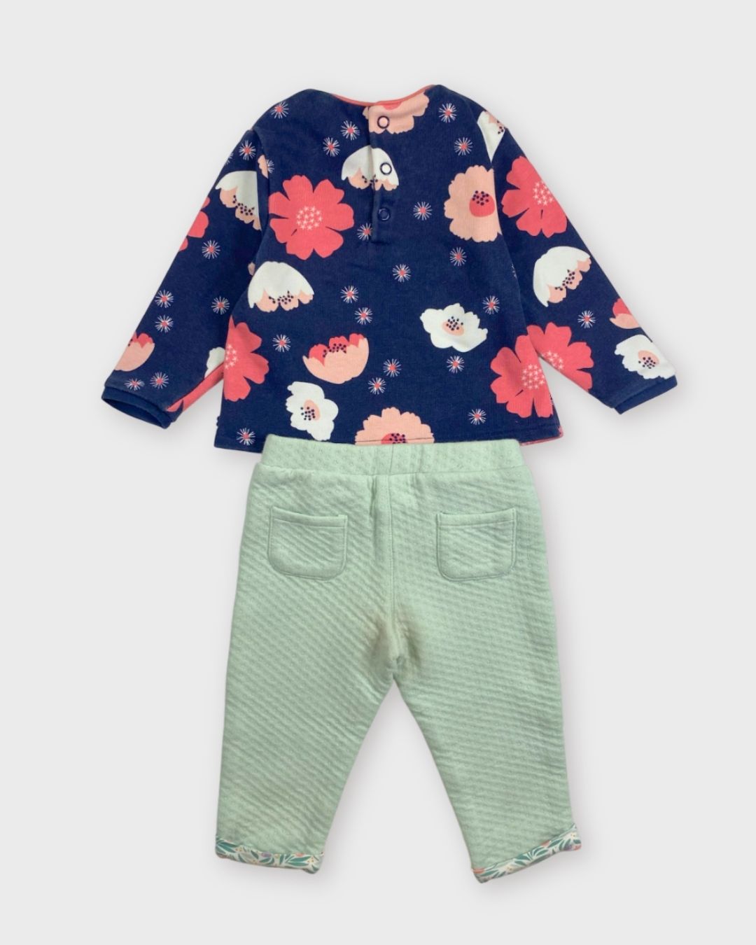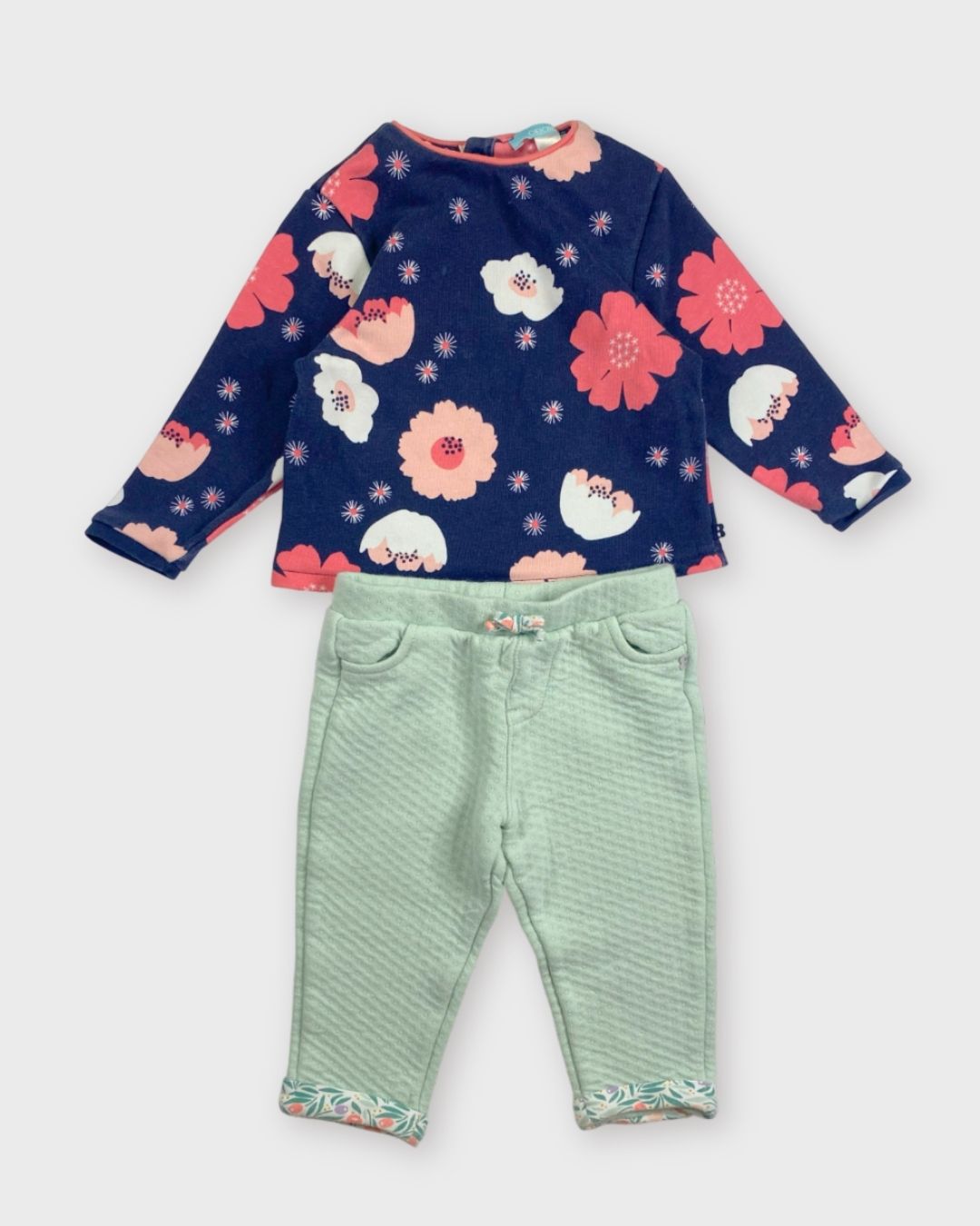 Un look confort idéal pour les petites exploratrices : pantalon vert d’eau Obaïbi et pull épais assorti. Une tenue cosy et pratique, parfaite pour accompagner bébé au quotidien.