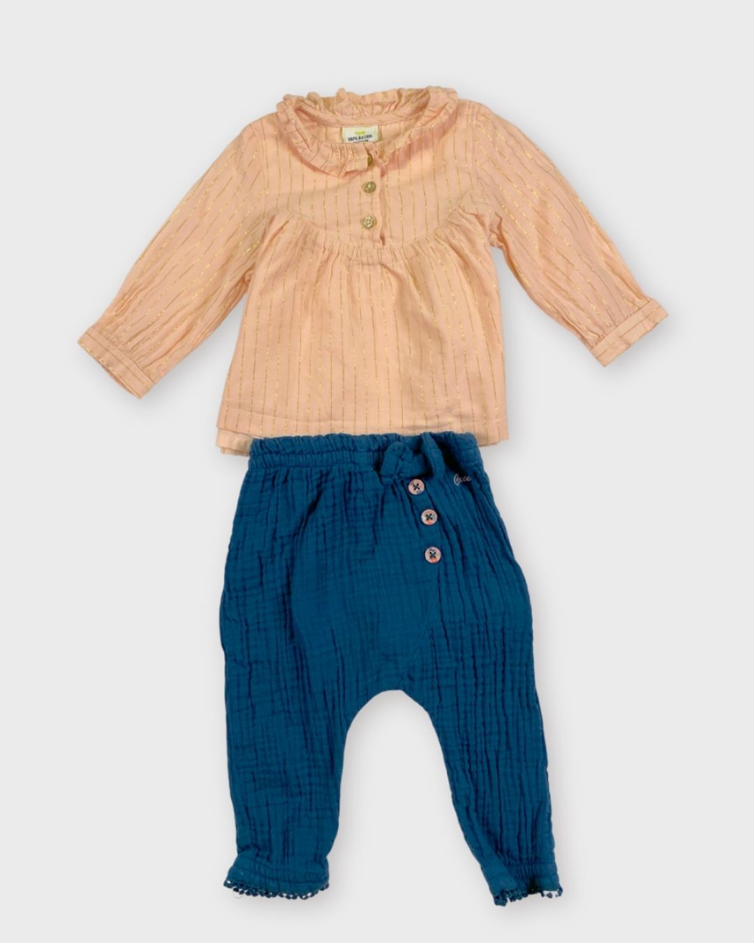 Un pantalon en double gaze Creeks et une blouse Tape à l’œil. Moderne et tout confort. 🌿