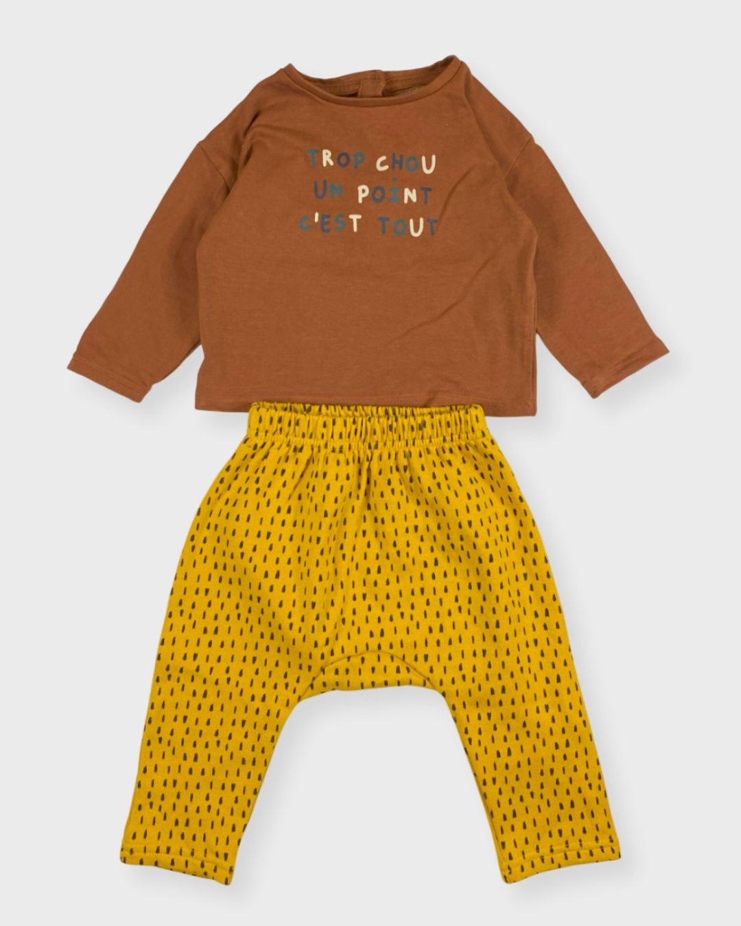 Jogging sarouel Petit Béguin et t-shirt Verbaudet. Original et adorable, on adore ! 🌿🧸