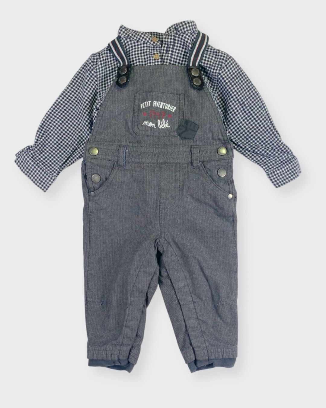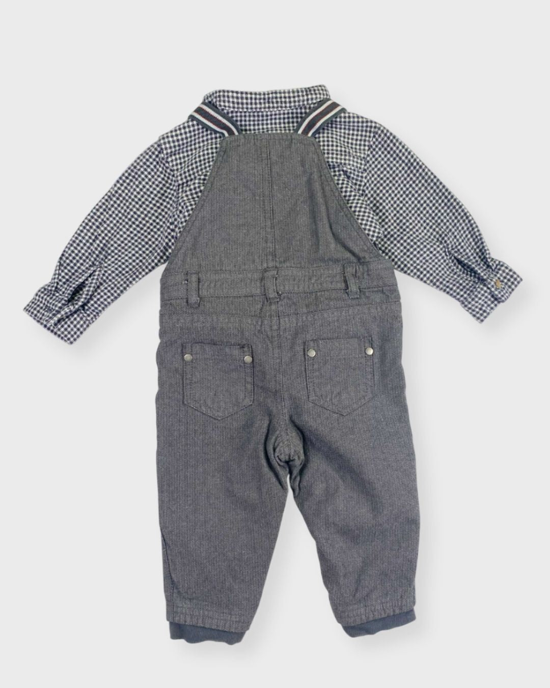 Une chemise Kiabi adorable portée sous une salopette Gémo. Un look garçon 6 mois mi-saison qu’on aime tant. Chic et mignon. 👔💙