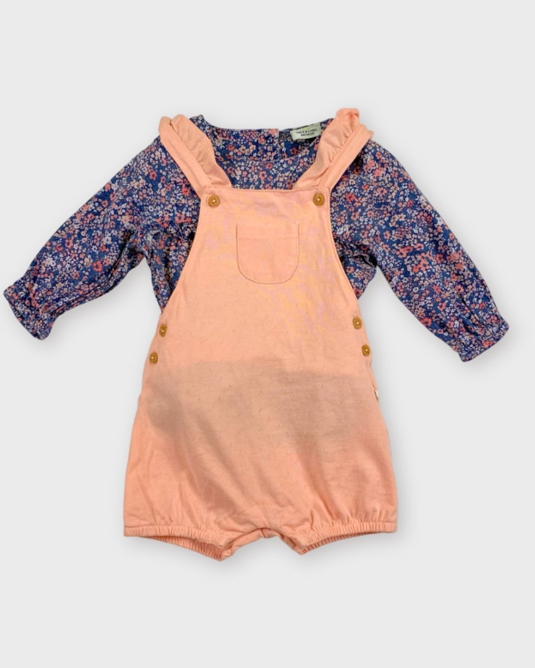 Une petite salopette Tape à l’œil avec une blouse fleurie assortie. Adorable et tendance. 🌼