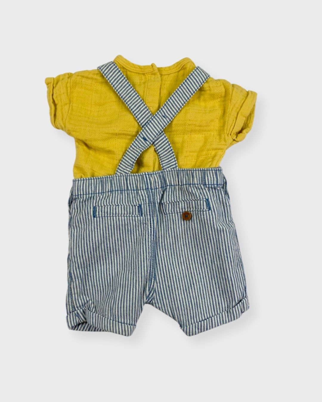 Salopette rayée Sergent Major et t-shirt moutarde Kiabi. Un look estival adorable. 🌞💛
