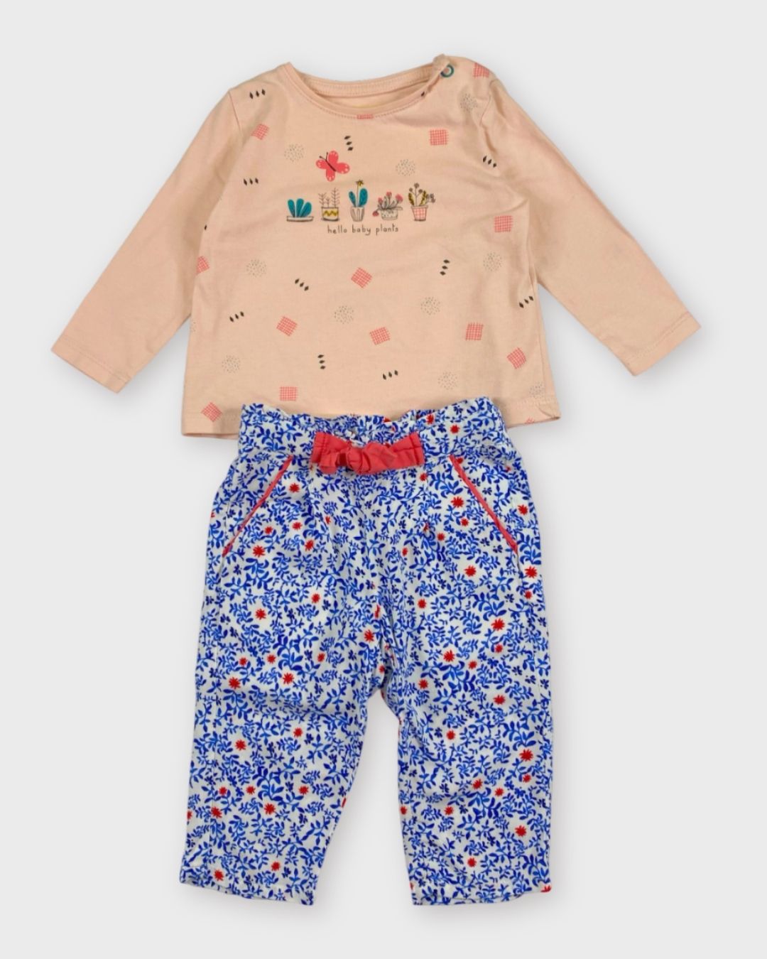 Un pantalon fleuri bleu Gemo et un t-shirt rosé Inextenso. Un look tendance et coloré. 💙🌸