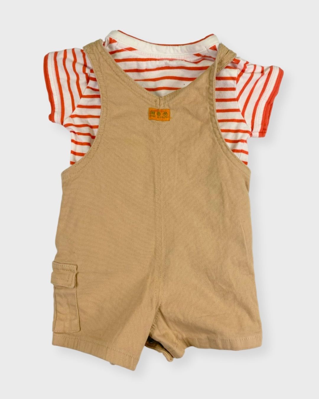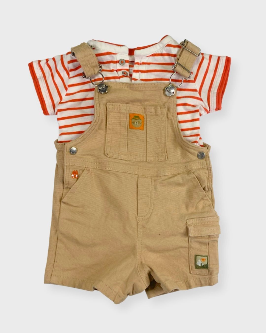 Salopette-short Sergent Major et marinière orange Obaïbi. Frais et trop craquant pour l’été. 🍊⚓