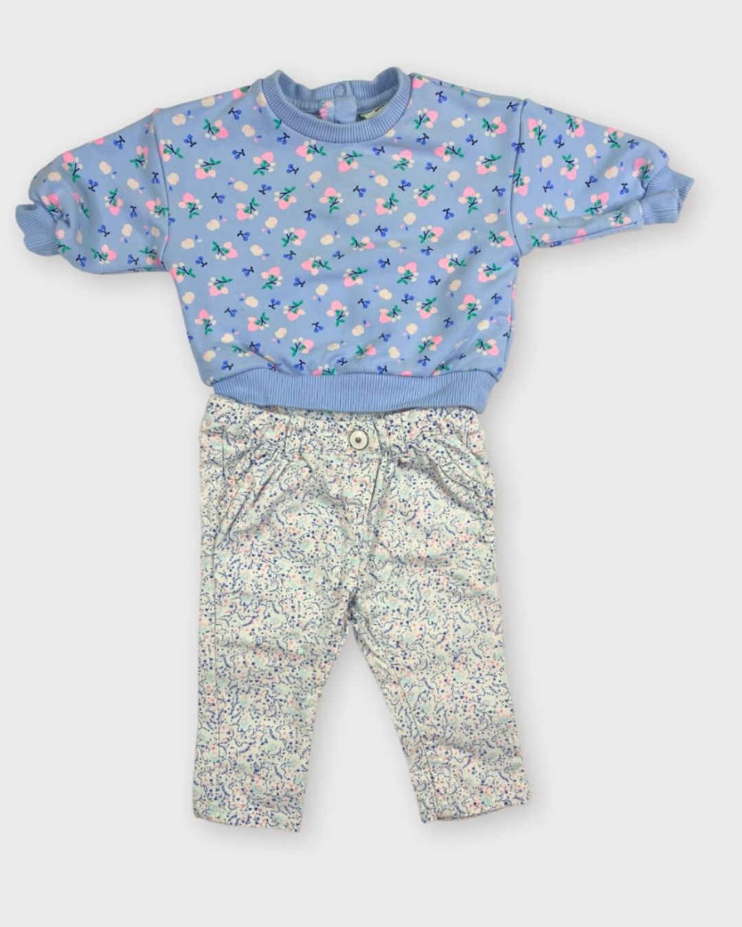 Un look bleu et fleuri signé Tape à l’œil : pantalon et pull assortis. On adore son style frais et confortable. 💙
