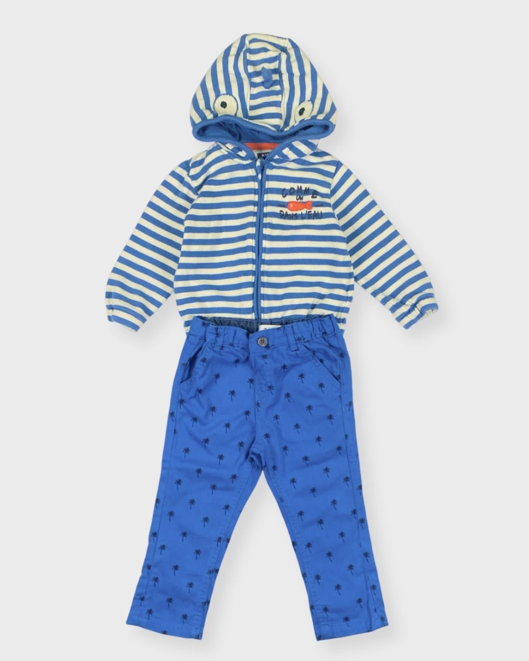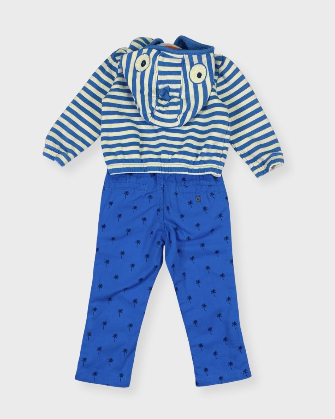 Pantalon palmier La Redoute et gilet Kiabi. Frais et original, esprit îles. 🌴✨