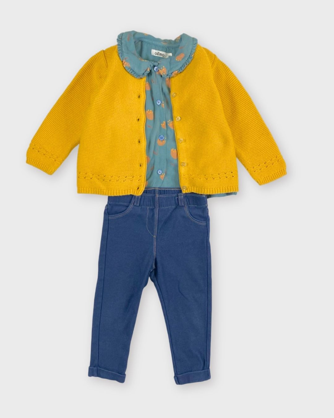 Jegging Kiabi, blouse Gemo et gilet coloré Tape à l’œil. Un ensemble moderne et tendance.