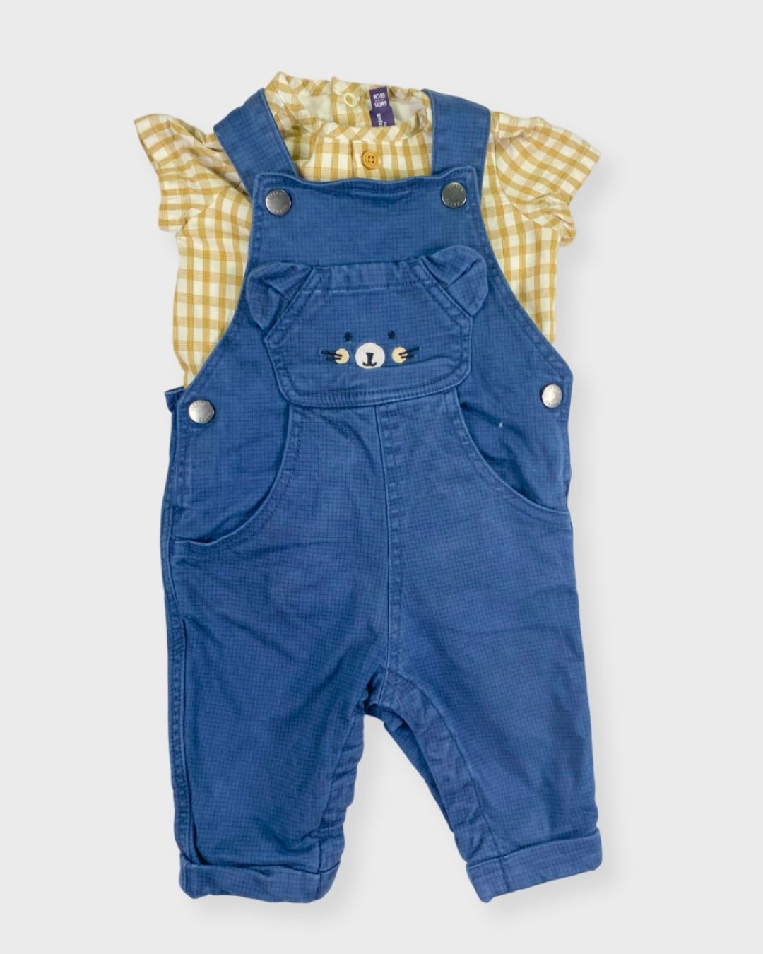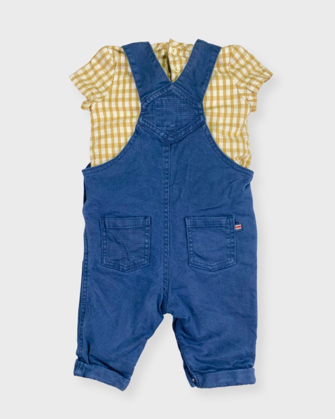 Une salopette Sergent Major avec une petite souris dessus, accompagnée d’un t-shirt-body vichy Sergent Major. Un look mi-saison plein de charme. 🐭💫