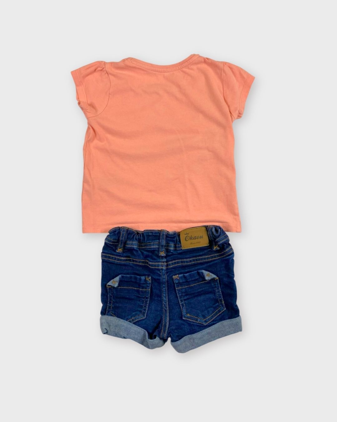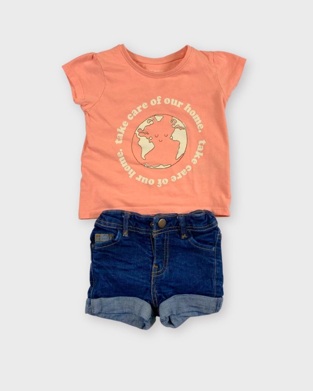 Un short en jean La Redoute et un t-shirt pastel Primark. Un look qui sent bon l’été.