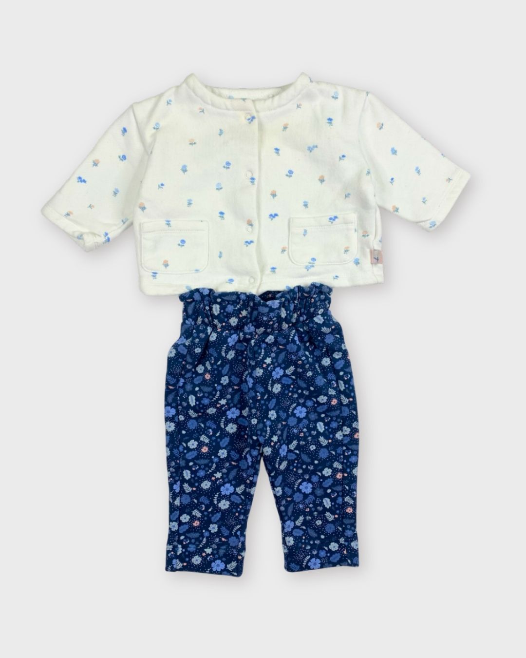 Sous le signe des fleurs et du confort, ce look associe un pantalon Tape à l’œil à un gilet doux Boutchou bio. Frais et pratique pour la mi-saison. 🌼