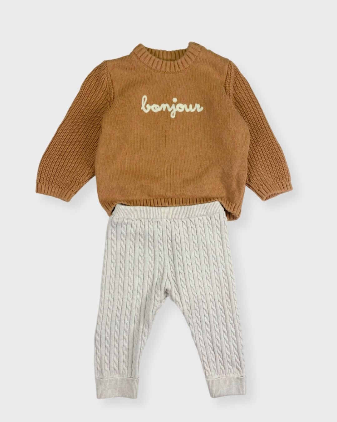 Style confort : legging Gémo et pull doux Kiabi dans des couleurs beige et marron. Un ensemble cocooning et tendance. 🤎✨