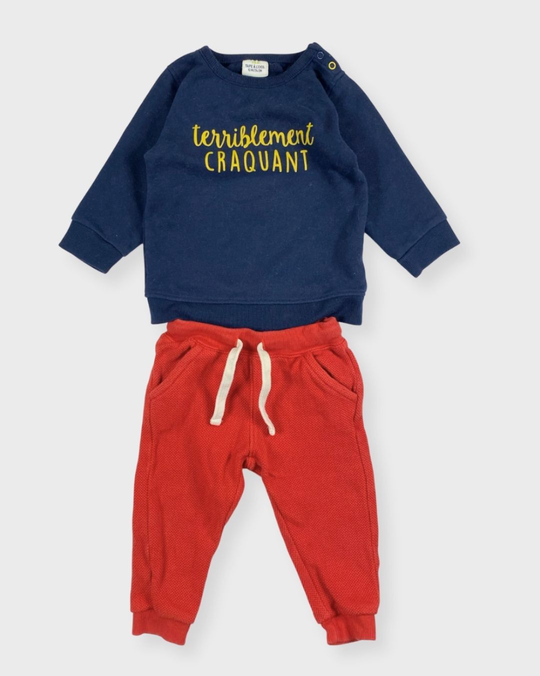Jogging Boutchou bio et t-shirt manche longue Tape à l’œil. Coloré, pratique et confortable. 💙🌟