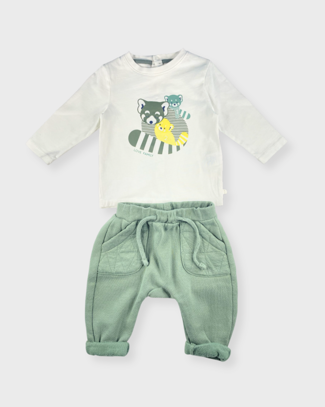 Ensemble trois pièces plein de confort avec un pantalon Tape à l’œil, un t-shirt manche longue Obaïbi et un gilet M&S.