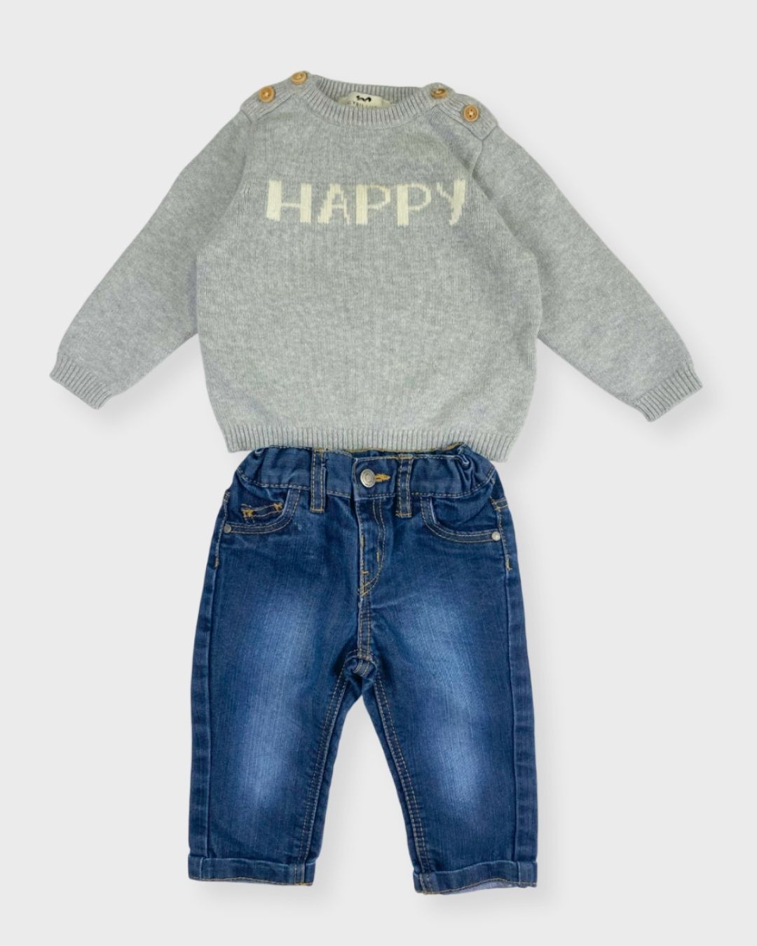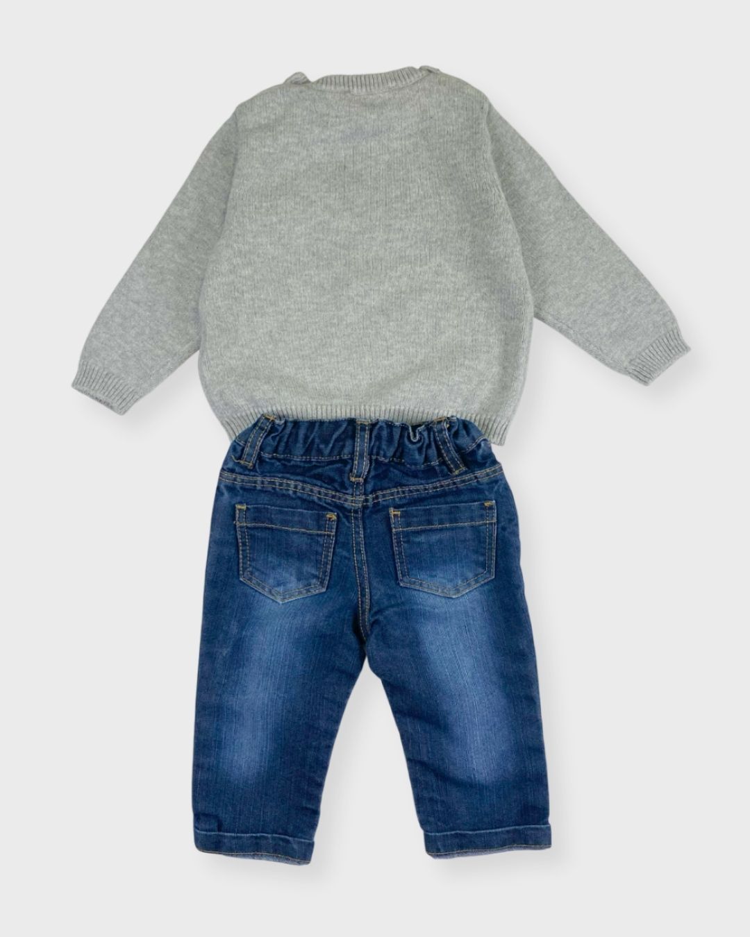 Look tendance garçon mi-saison : jean Pat et Ripaton et pull gris Cyrillus. Un duo moderne et élégant. ✨👕