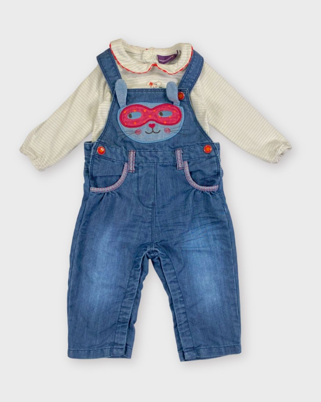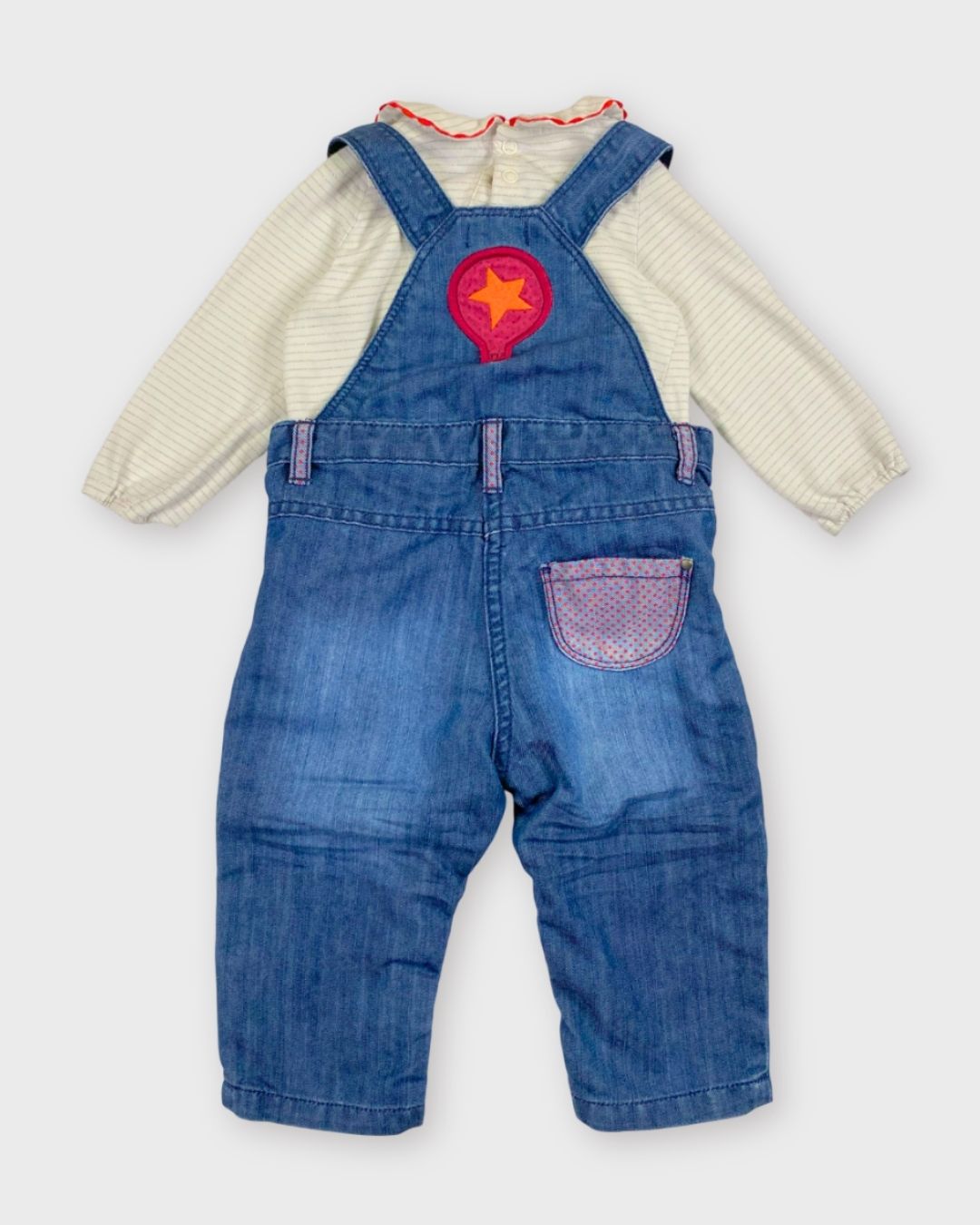 Craquant et pratique : salopette en jean Du Pareil Au Même et t-shirt manches longues Sergent Major. Un look irrésistible.