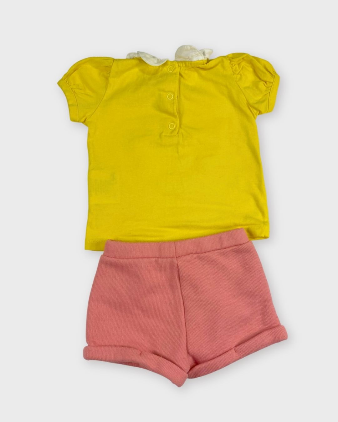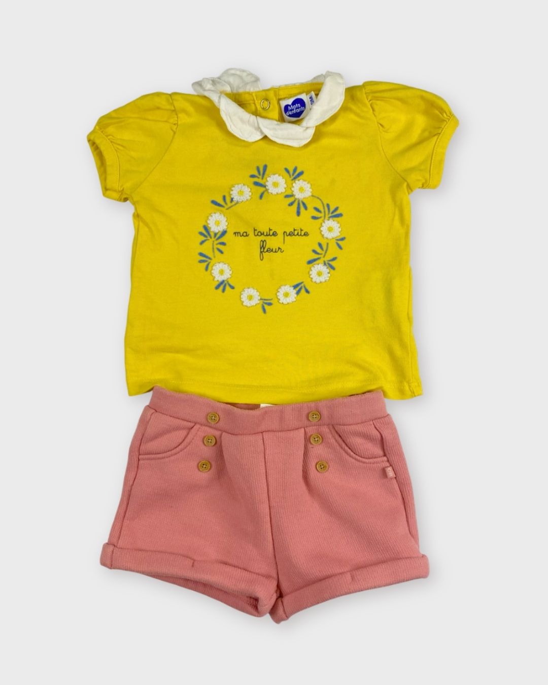 Un short Obaibi et un t-shirt fleuri Mots d’enfants. Coloré et parfait pour l’été. 🌺
