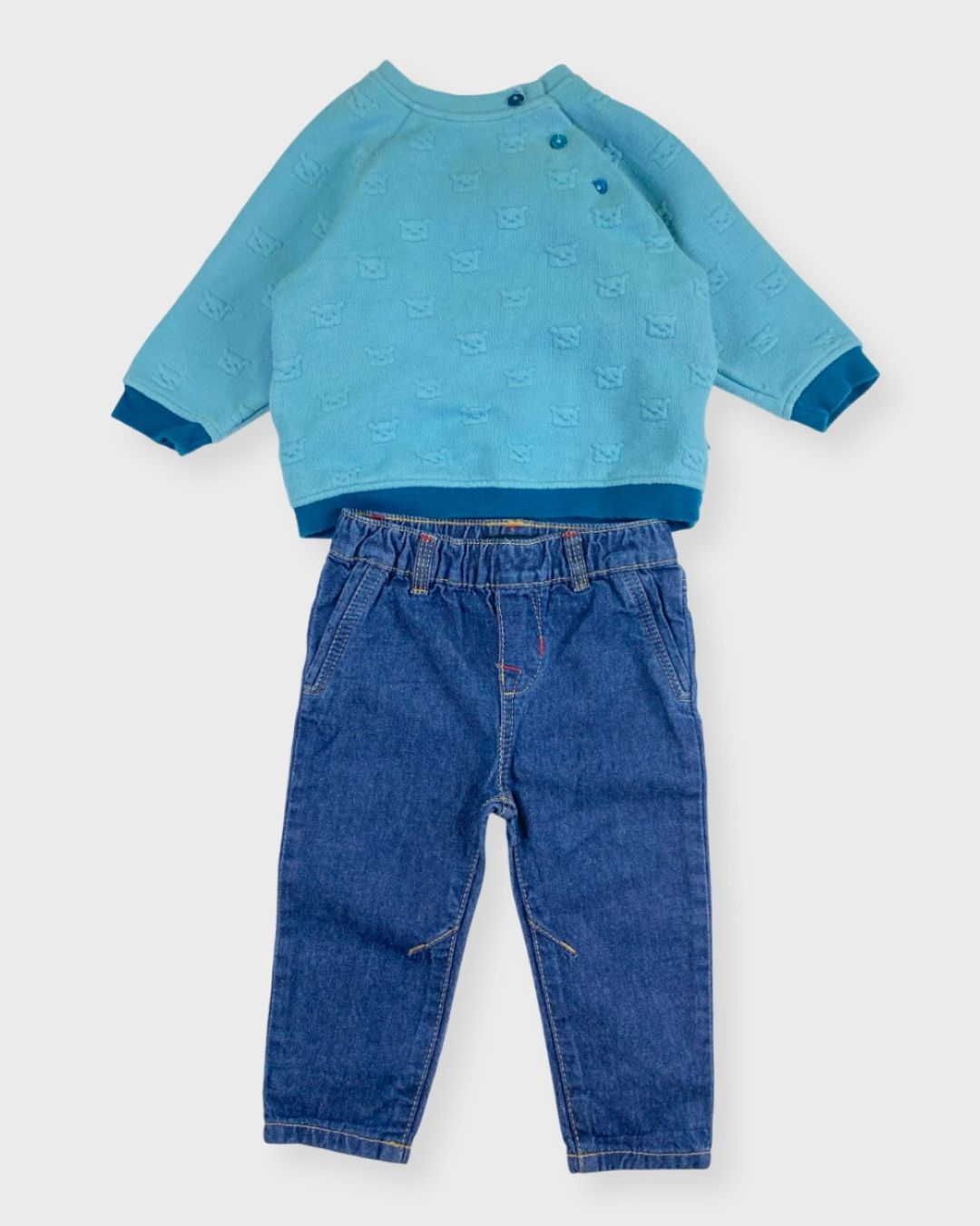 Jean Inextenso et pull ourson Obaïbi. Confortable, mignon et tendance. 🐻💙