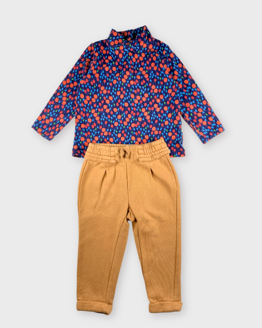 Tenue cocooning et confortable avec un jogging Gemo et un t-shirt Du Pareil au Même, simple et adorable.
