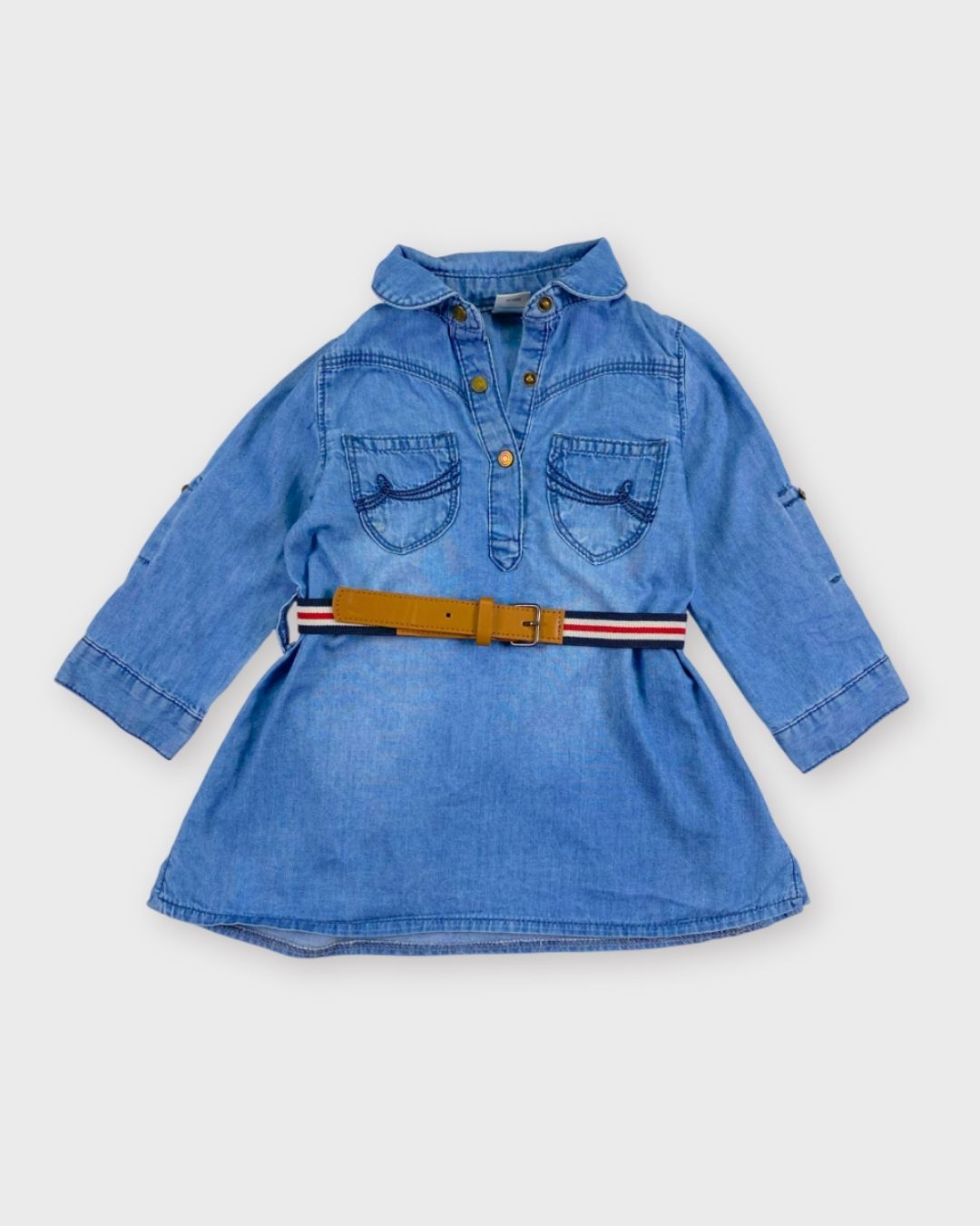 Une tunique en jean avec sa ceinture Grain de blé. Un look tendance et adorable pour la mi-saison. 👖