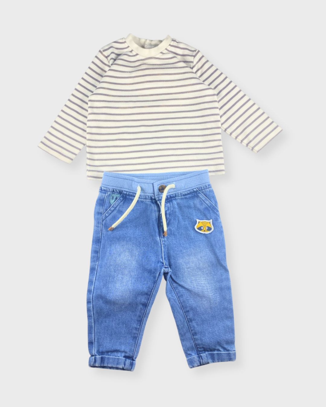 On aime ce look casual avec jean Mots d’Enfants et t-shirt manches longues.