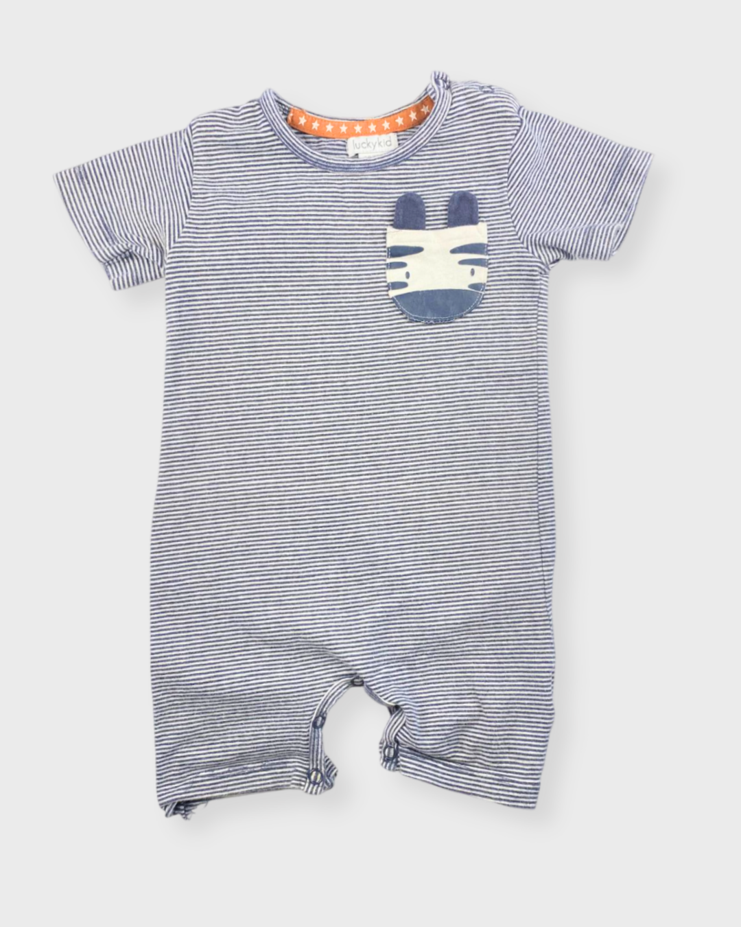 On fond pour cette adorable combinaison ornée de son petit zèbre Luckykid, parfaite pour de jolies aventures.